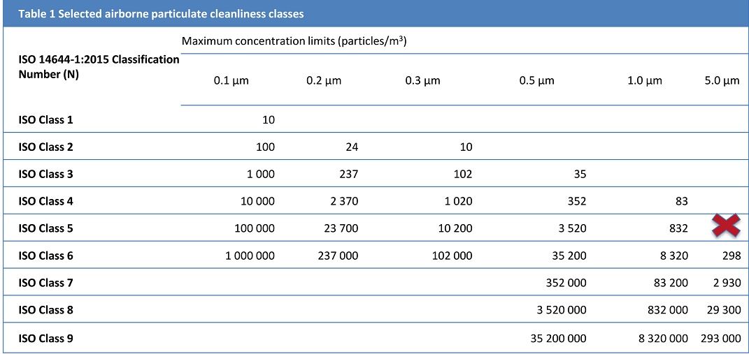 刪除ISO 5(A級)5.0um粒子的限度標準